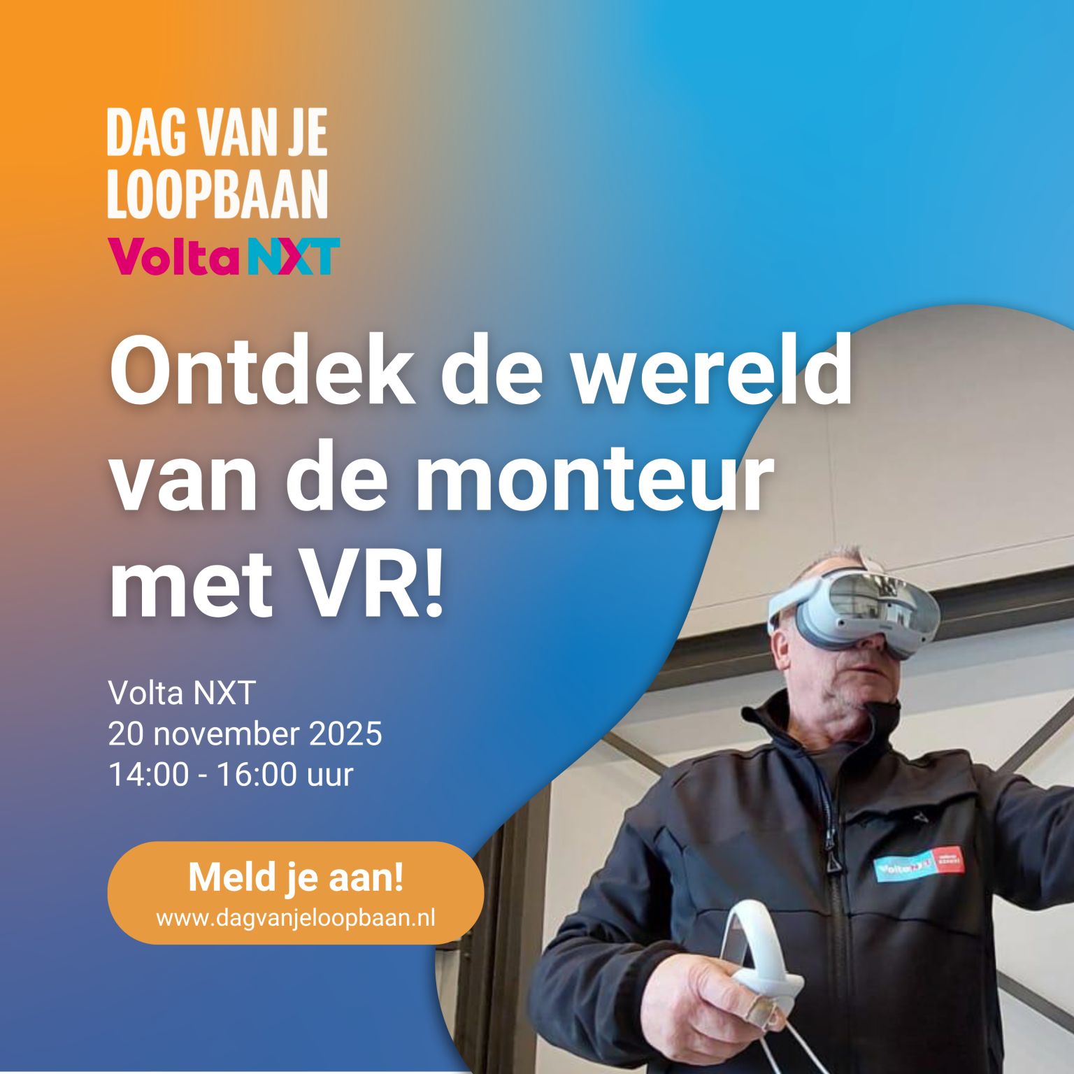 Benieuwd hoe het is om monteur te zijn en wat een carrière in techniek jou kan bieden? Tijdens de Volta NXT Experience op de Dag van je Loopbaan krijg je een uniek kijkje in het vak via een meeslepende Virtual Reality Experience.